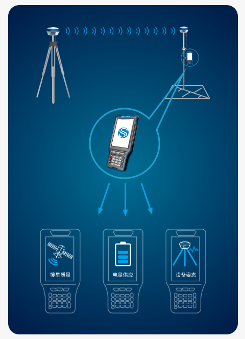 通过手簿远程实时监测基站搜星质量、电量供应、设备姿态,意外情况发生即时警告,防止后续数据错误返工